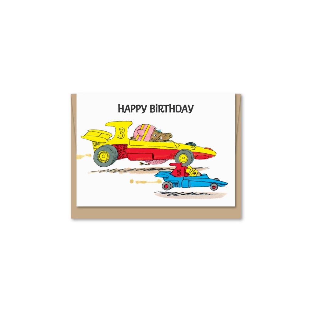 Maginating Richard Scarry Mini Racing Car Birthday Card