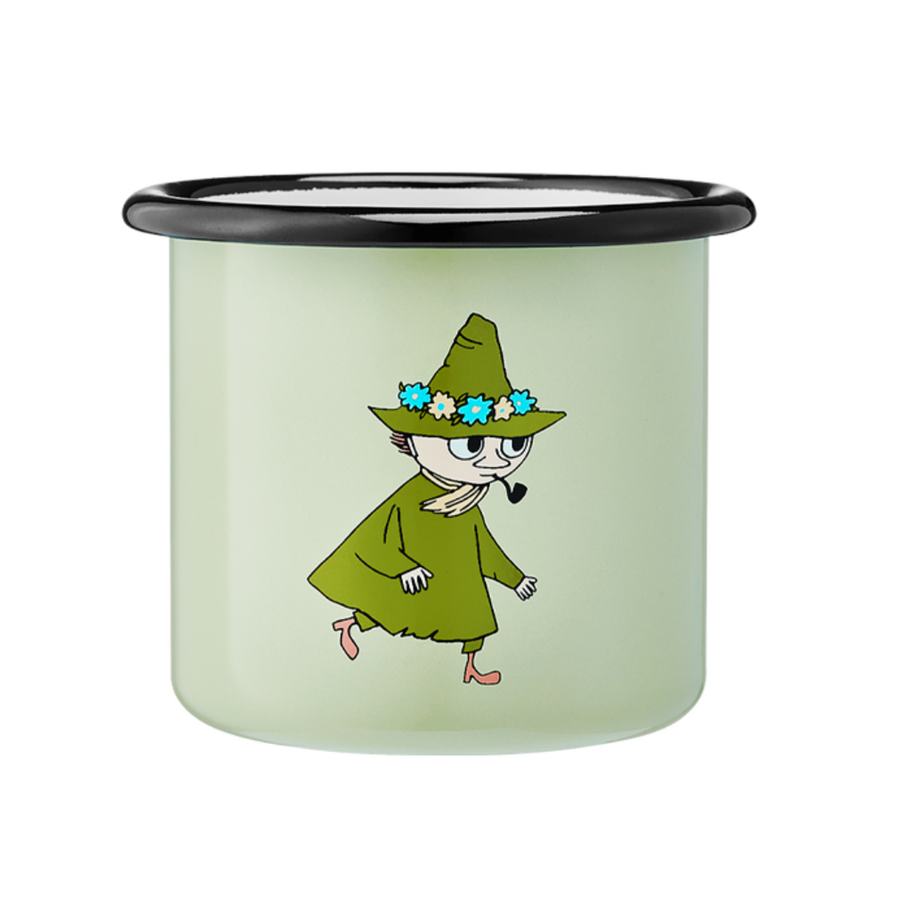 Take a step into the world of Moominvalley, with this special retro-inspired mug featuring everyone's favorite determined and mischievous character, Little My.The perfect gift for fans of the beloved Finnish comic strip!  The enamel mug is suitable for both hot and cold drinks, whether inside or outside.