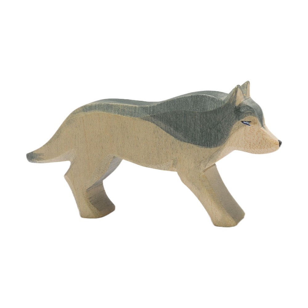 This wolf has been cut, sanded and painted by hand, a process that has remained unchanged in Germany for over fifty years. Appreciated by children and adults alike for its fine detail and craftsmanship, this piece is equally at home in the playroom or on the mantle.
